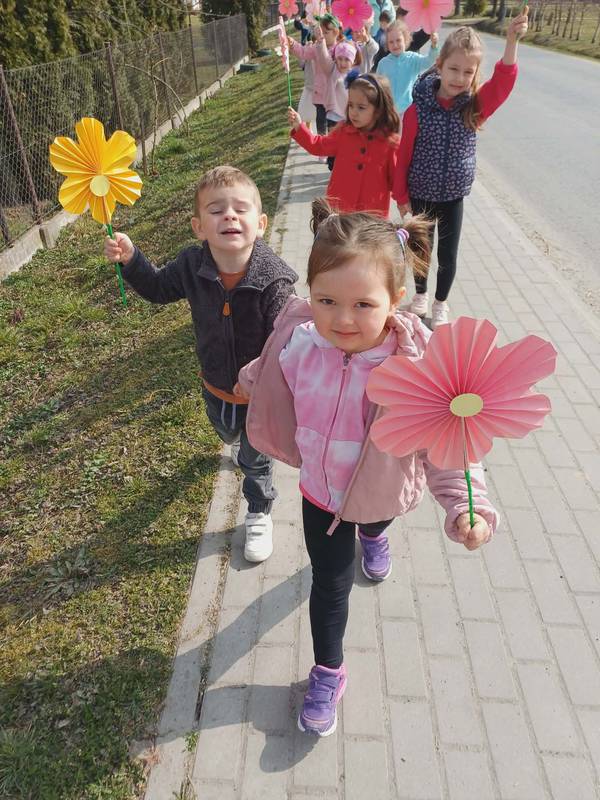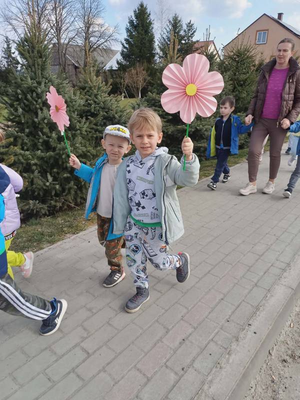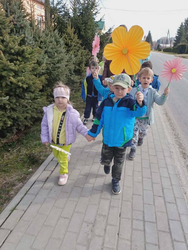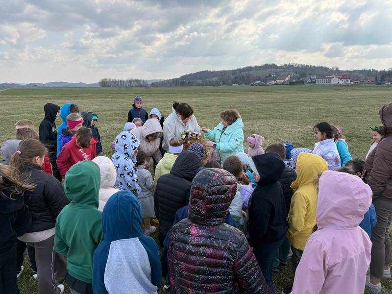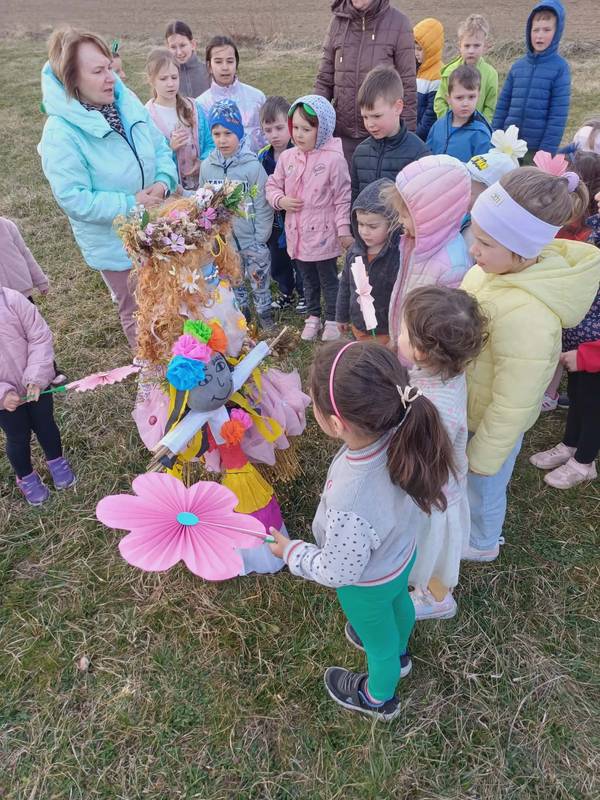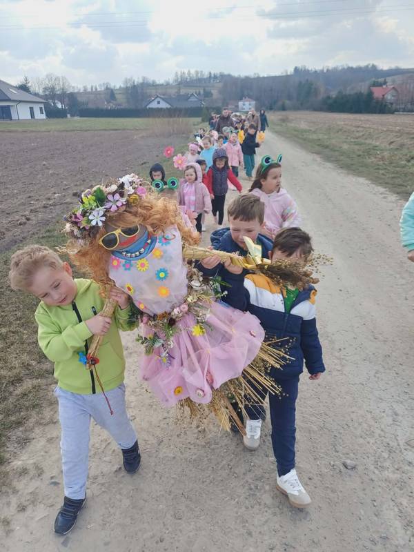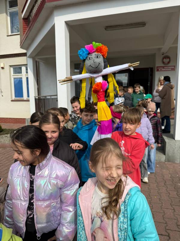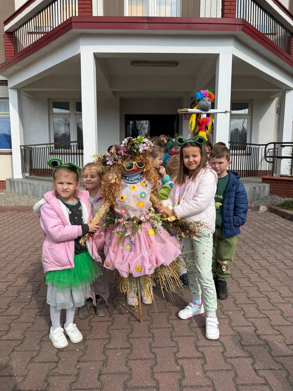 Następnie, wraz z opiekunami, dzieci udały się na pobliskie pola, gdzie zgodnie z tradycją pozostawiły marzanny, symbolicznie żegnając zimę i witając nadchodzącą wiosnę. Spacer był doskonałą okazją do wspólnej zabawy na świeżym powietrzu oraz integracji uczniów.