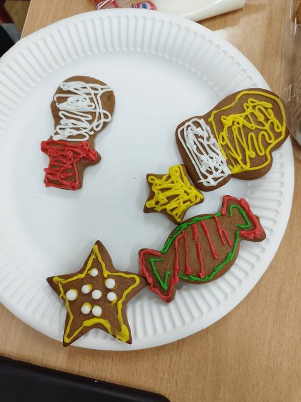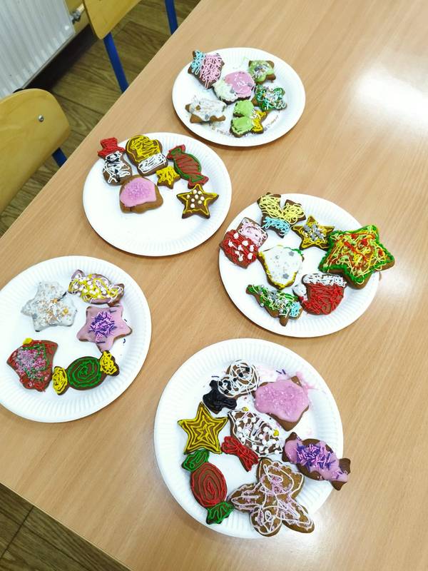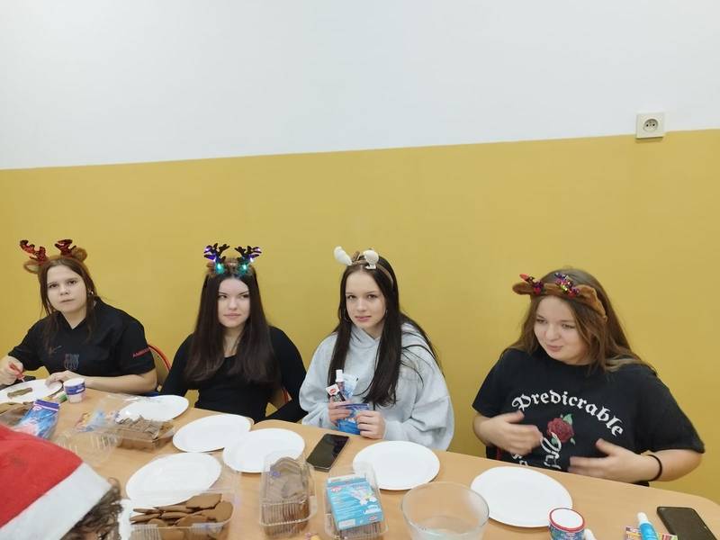 Już od pierwszych chwil uczniowie poczuli prawdziwą magię Świąt. Stołówka szkolna zamieniła się w elfią cukiernię, w której ósmoklasiści z zaangażowaniem dekorowali upieczone wcześniej pierniki. To kreatywne zadanie wprowadziło wszystkich w świąteczny nastrój i pozwoliło rozwijać kulinarne umiejętności.