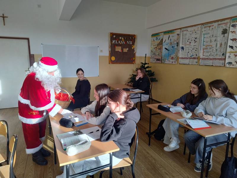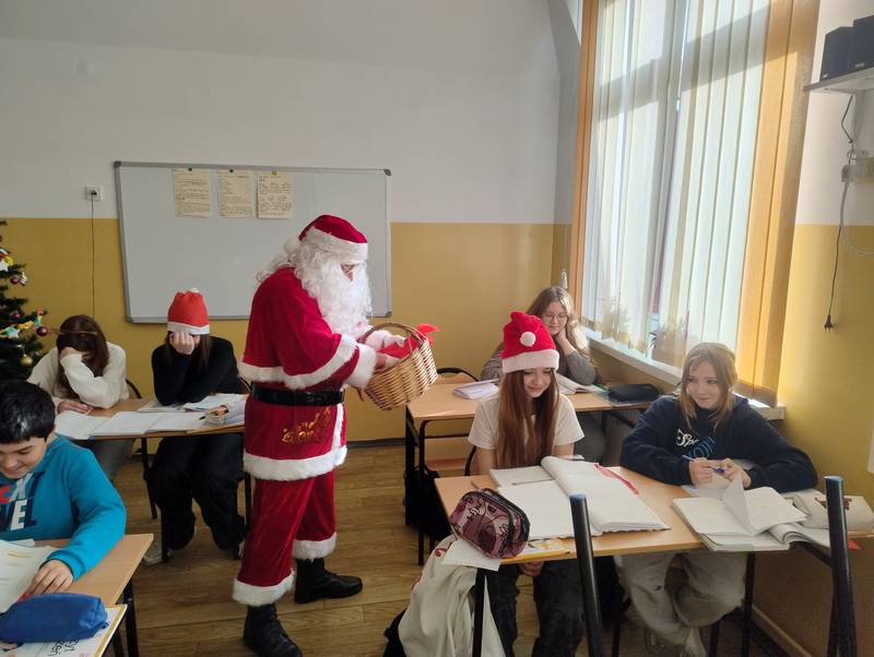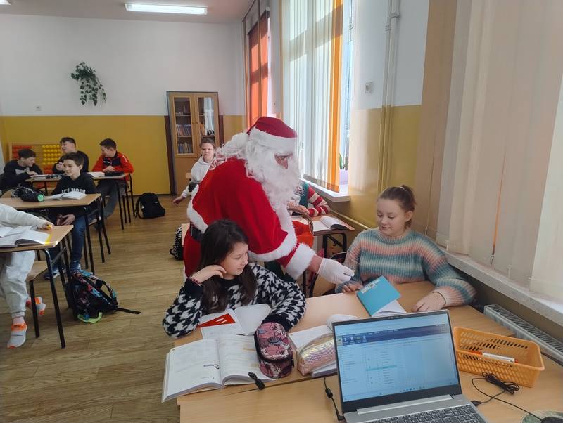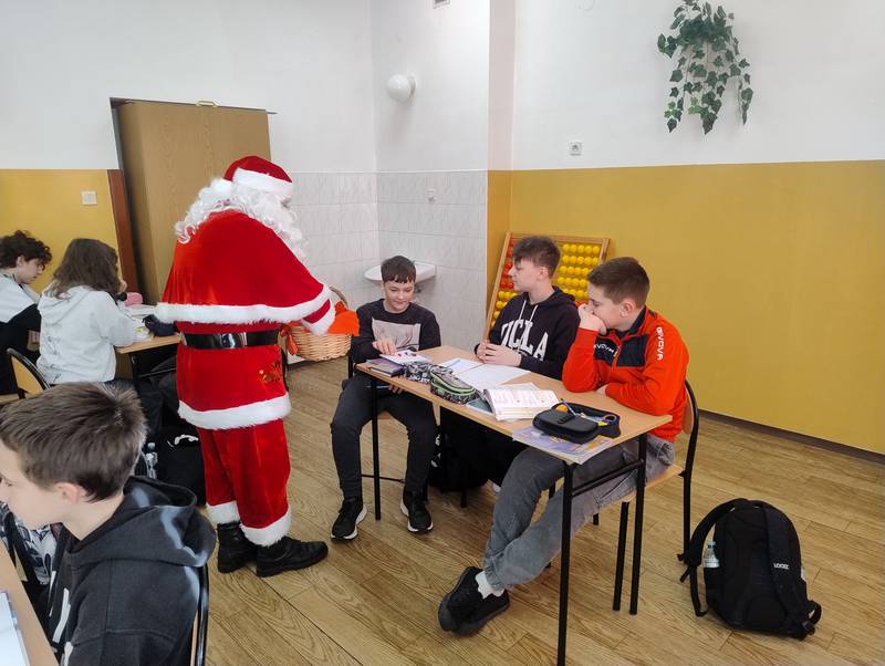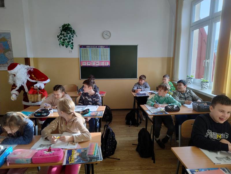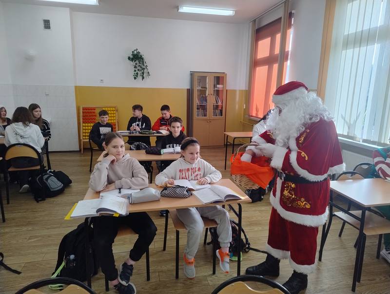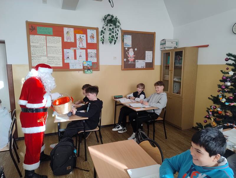 5 grudnia 2025 r. w naszej szkole odbyła się wyjątkowa wizyta Świętego Mikołaja. Od samego rana uczniowie z niecierpliwością wypatrywali go na korytarzach. I w końcu przybył! Mikołaj odwiedził każdą klasę, w której rozdawał słodycze, rozmawiał z dziećmi i dopytywał, czy były grzeczne oraz czy obiecują poprawić swoje zachowanie.