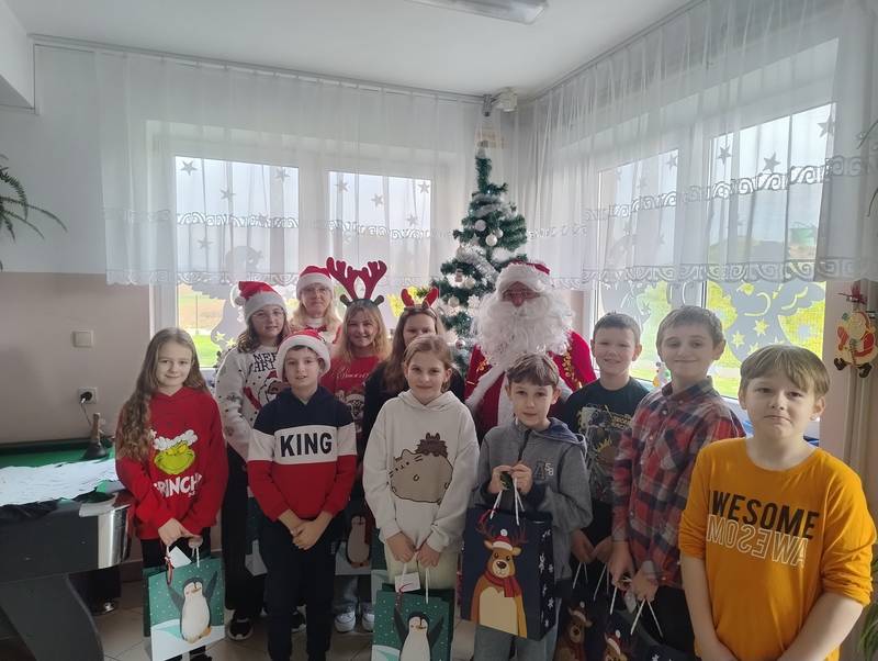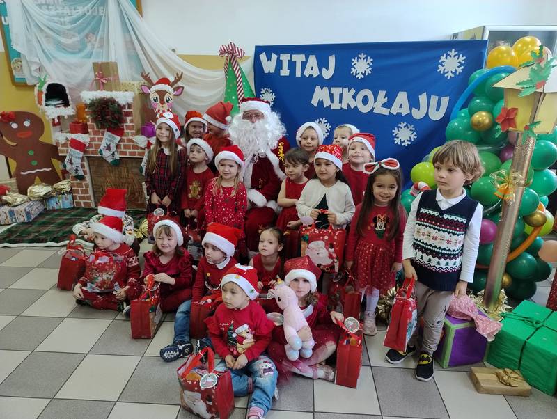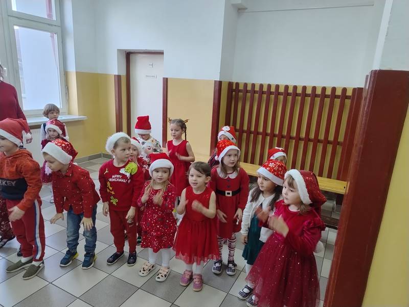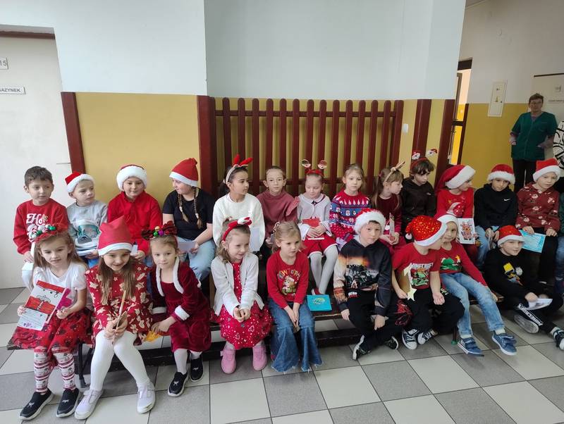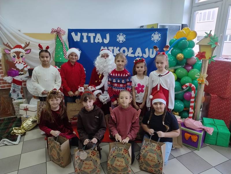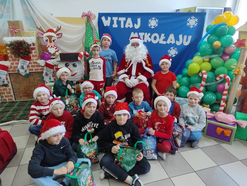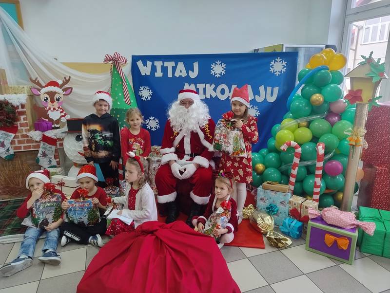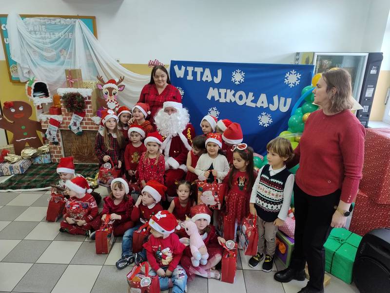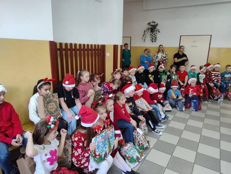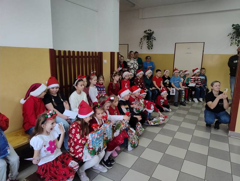 Po klasowych odwiedzinach Mikołaj spotkał się z najmłodszymi dziećmi w specjalnie przygotowanej sali. Uczniowie zaśpiewali dla niego piosenkę, wprowadzając wszystkich w świąteczny nastrój. Następnie każde dziecko otrzymało indywidualny prezent, który wywołał mnóstwo uśmiechów.